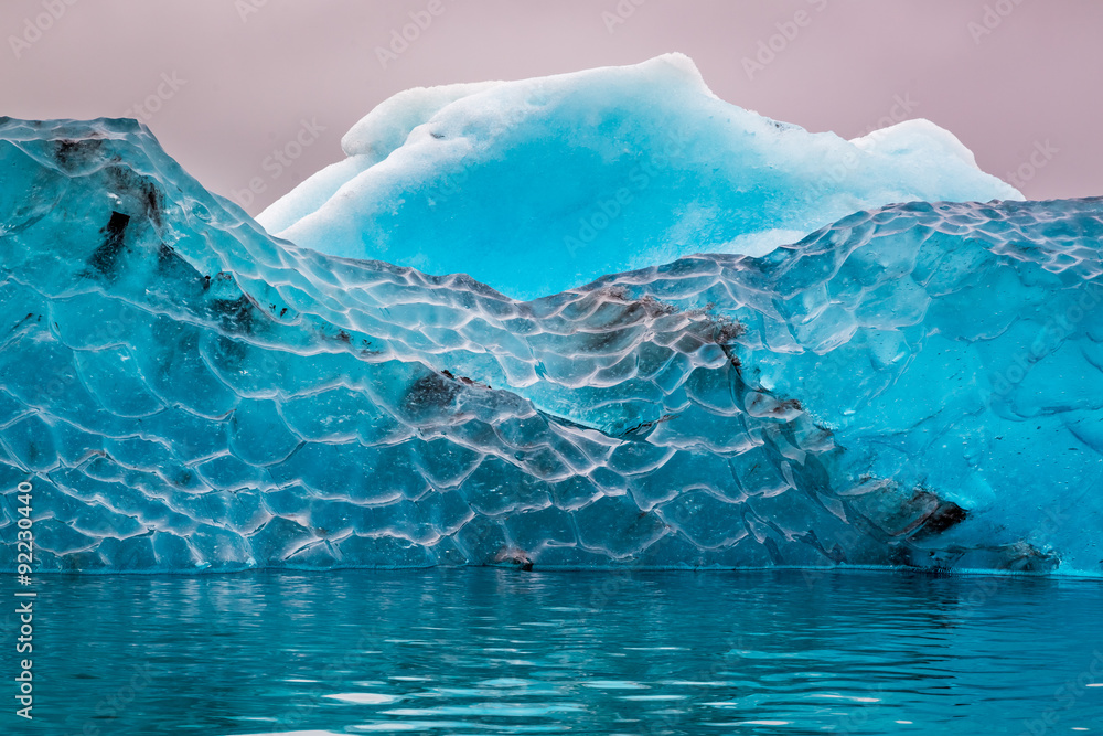 Fototapeta Niebieska góra lodowa w zimnym jeziorze, Islandia #92230440