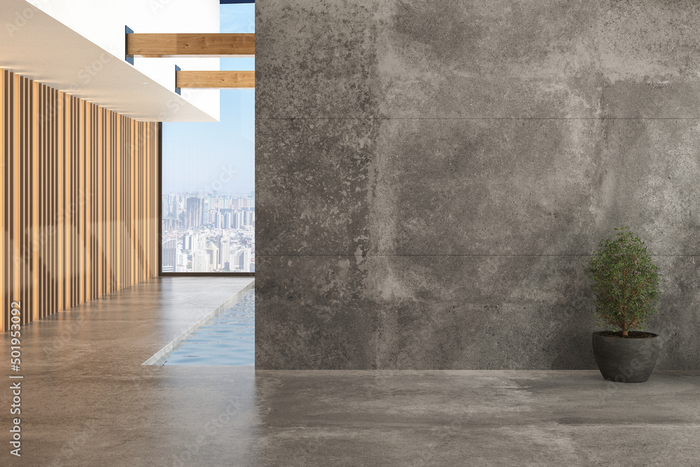 Naklejka Renderowanie 3D wnętrza domu bez mebli. Renderowanie 3D #501953092