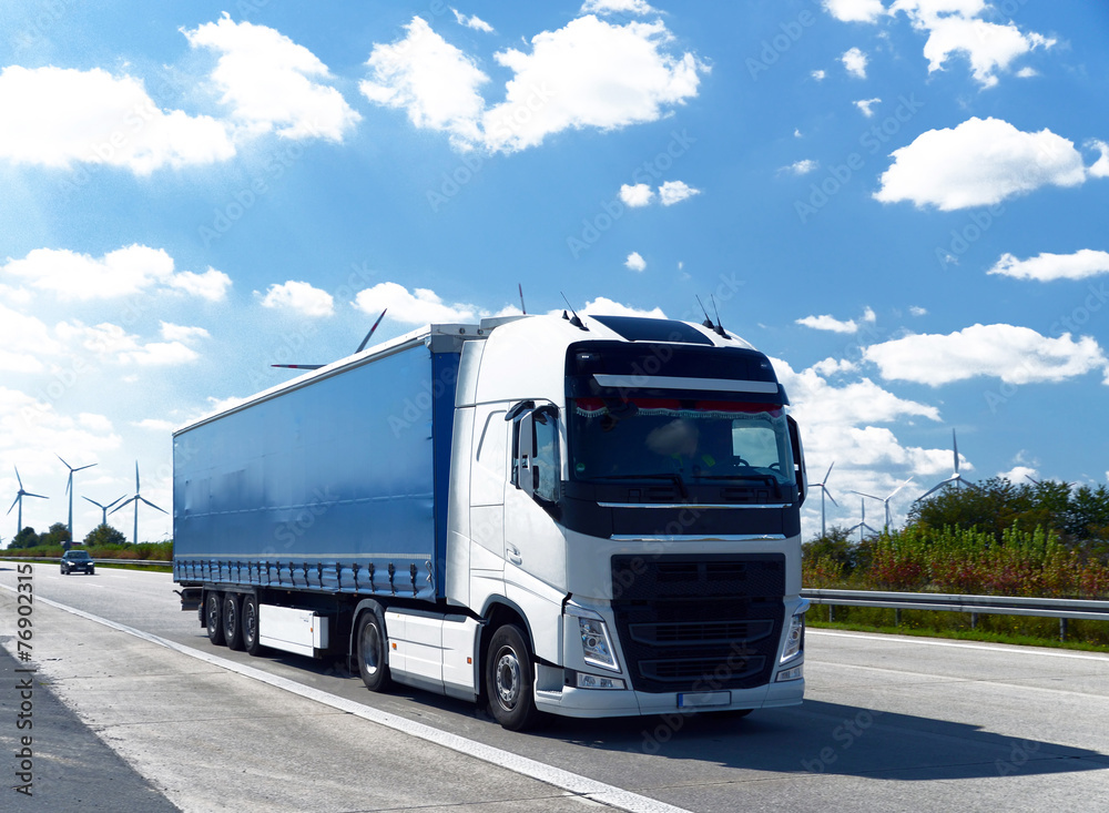 Plakat LKW auf Autobahn // Truck on highway #76902315